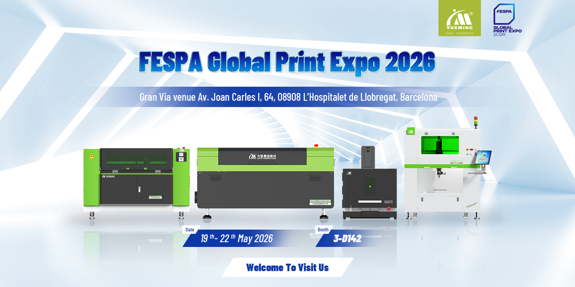 Han’s Yueming Laser Group will participate in FESPA Global Print Expo 2026 Barcelona, held from May 19–22 at Gran Via Venue, Av. Joan Carles I, 64, 08908 L’Hospitalet de Llobregat, Barcelona, Booth 3-D142. We sincerely invite you to visit us and experience our advanced laser equipment. Han’s Yueming Laser Group cordially thanks FESPA, the organiser of this exhibition, for providing an excellent platform for the global laser and signage industry, promoting technology exchange and industry development.
